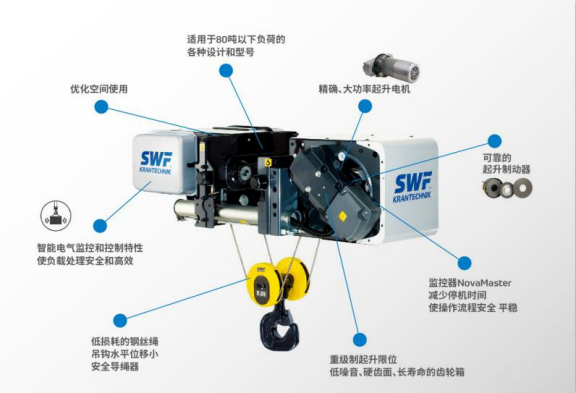 NOVA Silverline是SWF鋼絲繩葫蘆的旗艦產(chǎn)品。此系列產(chǎn)品優(yōu)化使用空間、操作高效、性?xún)r(jià)比高。NOVA silverline選項多、擴展性強、能適合各種工業(yè)應用??筛鶕煌蛻?hù)的需求,配置其功能。